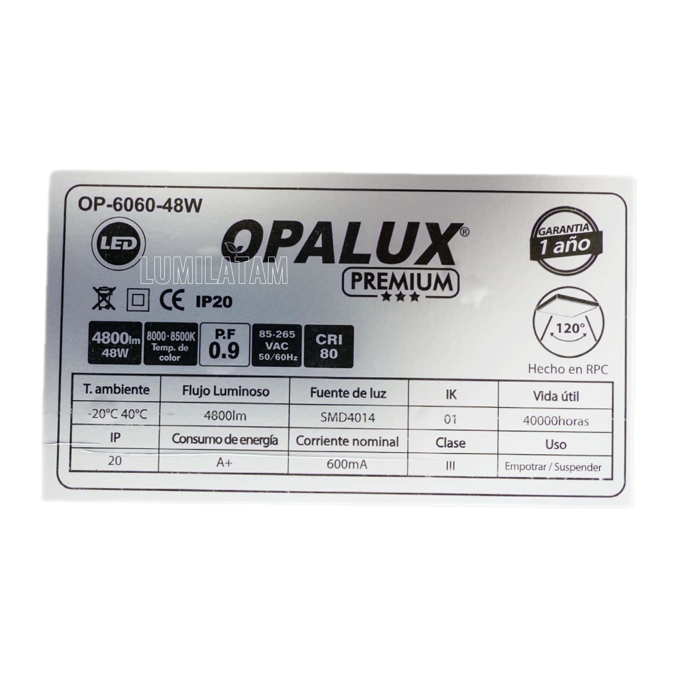 PANEL LED EMPOTRABLE 60X60 OPALUX 48W⚡